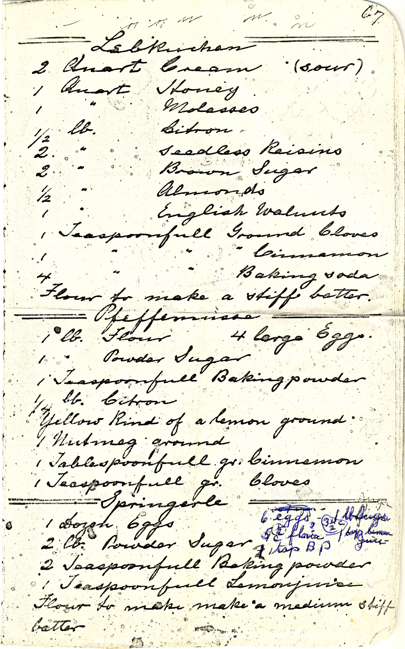 This is a copy of the page in Adolph Jurgens recipe book with the Springling cookies at the bottom of the page.  The other cookies are good also.  Notice the large amounts.  I think they made lots of these cookies, maybe for gifts as well as eating.